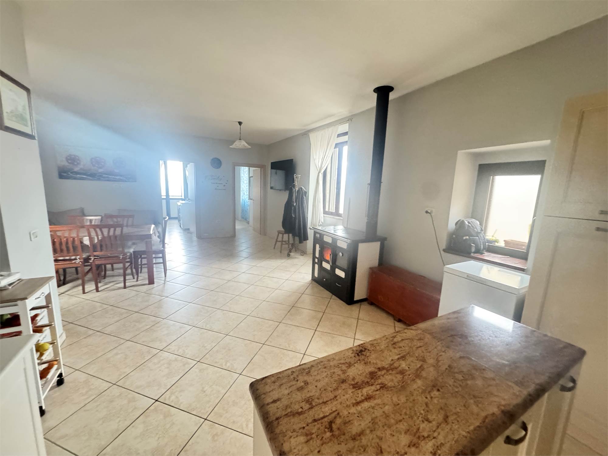Il comfort è garantito da impianto di riscaldamento con radiatori, integrato da stufa a pellet.